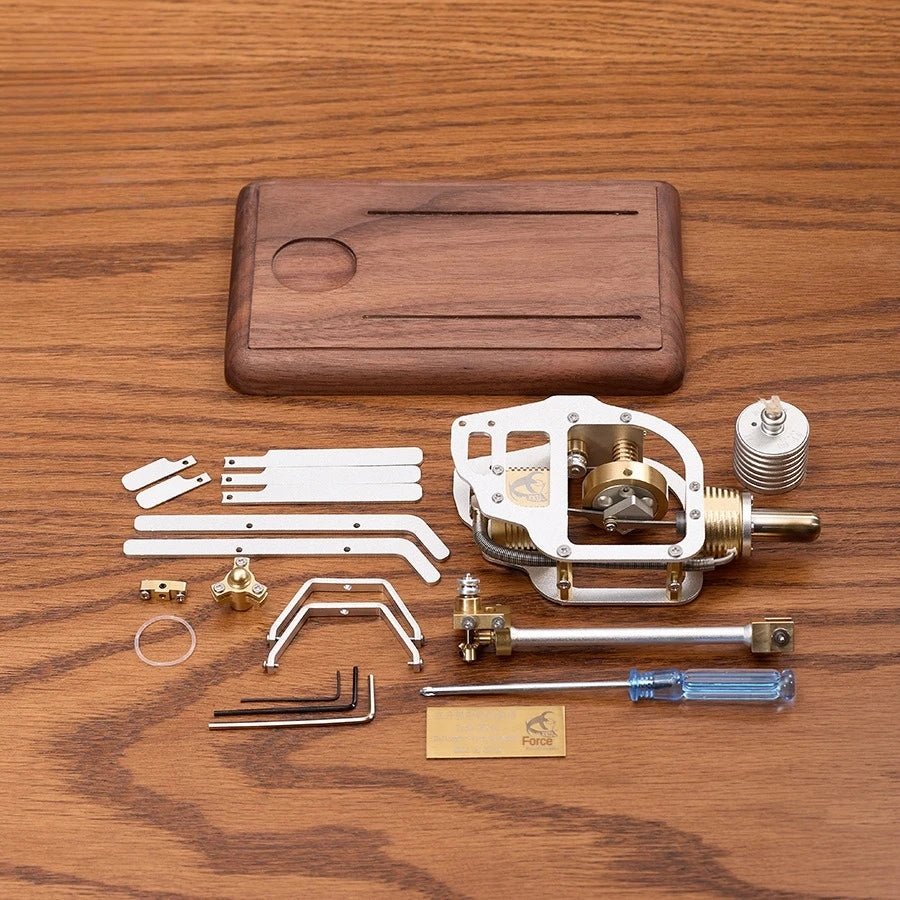 Our Stirling helicopter engine model also uses a swashplate Stirling hot and cold cylinder opposite structure. This cold cylinder and hot cylinder opposite structure is beneficial to prevent the heat conduction of the cold and hot cylinders. The heat exchange capacity of the engine is improved, the engine temperature difference is maintained for a long time, and the power output is greater and more stable.