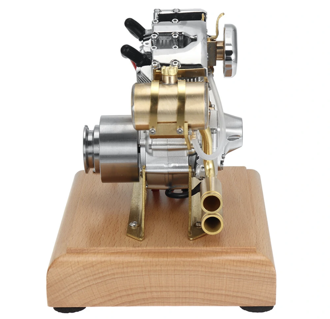 Features a retro flavor, classic body lines, cold cooling structure, new carburetor design, and a push-type throttle lever, this most intricate engine model highly restores the details of a real engine. Upgrade the intake and exhaust valves to large and small valves, thus the power is significantly improved.