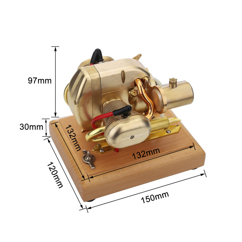 The cylinder body is level, so that the cylinder can avoid obstacles on the front wheels of the motorcycle and obtain good air-cooled heat dissipation performance. Two symmetrical exhaust pipes are one of the hallmarks of a horizontally opposed engine. The advantage of this model lies in its ingenious structural design, and every component restores the mechanical principle. An all-metal engine model that can be started and operated